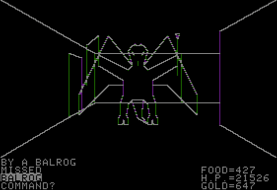 After completing 4 or 5 quests, I get my final mission to take out a Balrog. My tactic is to save my amulets on the way down using ladders, traps and trap doors to get down levels as quick as possible, carry out a hit and run on the Balrog then cast ladder ups all the way back to the top. On my return to LB, I’m rewarded with Knighthood and a phone number to ring, which I’m sorry to say is 29 years out of date.