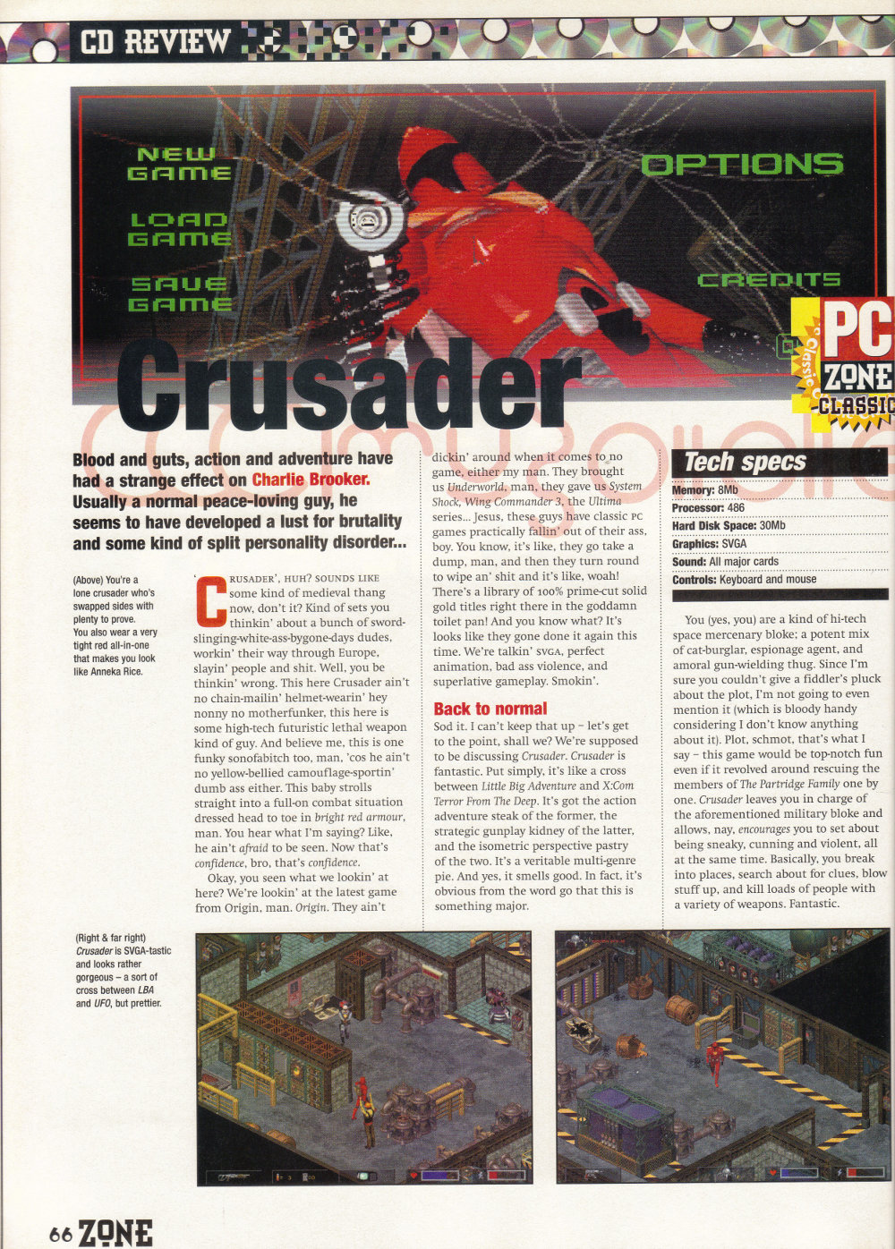 Crusader : No Remorse Review – PC Zone Posted on January 27, 2011 by Pix Reply This is my final set of scans for 1995 and comes from December 1995’s PC Zone. Share this: Click to share on X (Opens in new window) X Click to share on Facebook (Opens in new window) Facebook