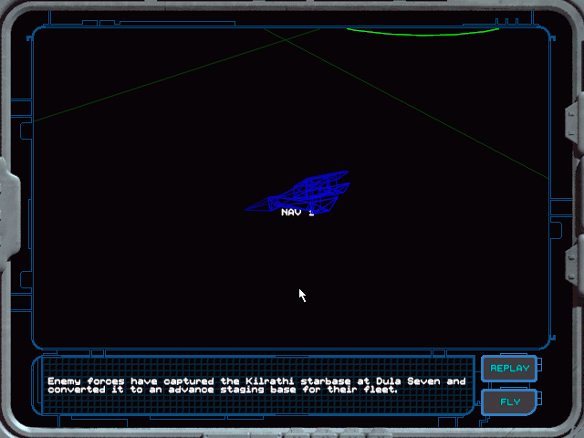 I think I can see now why I was let down by this game. In the movie sections, the writers are trying to empasise all the time how the new alien race is pure evil and its just overdone. I seem to spend half my time talking people around from depression and the storyline doesn’t really go anywhere. Its more like WC3 in that sense only worse.  The whole plot is limited to 4 sets also which can’t be a help. I don’t miss the branching video too much although this was a major part of the game in WC4 especially the endgame in the senate. It would have still been nice to see it again. In brief, this game has the worst movie sections of the FMV Wing Commanders but thats not to say they aren’t a lot bettter than most interactive movies (and still better than the Wing Commander movie)