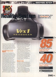 It’s about time I put something other than magazine scans on here but there is one more batch to finish off 1995. It’s not strictly Origin related but I’ve been running across reviews of the VFX1 and I was curious to see what was made of it at the time. To summarise, they quite liked the hardware but not the price:-
